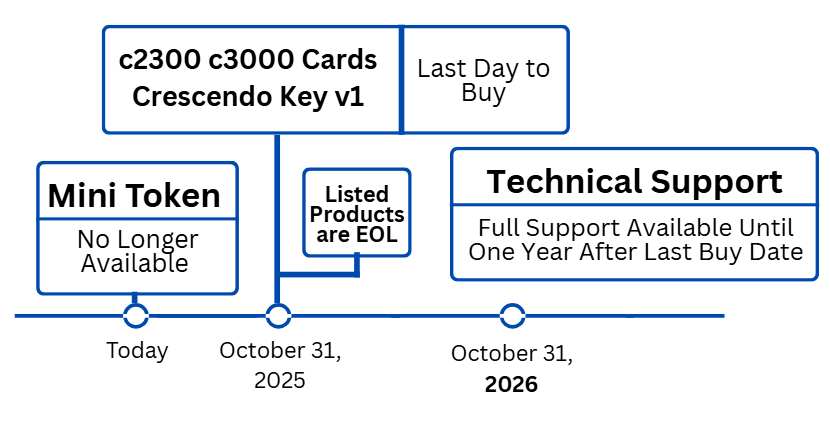 HID has officially announced the End of Life (EOL) for several products, including the Crescendo 2300 and 3000 Cards, the Crescendo Key v1, and the Mini Token. Below, we’ve answered a few frequently asked questions from customers. Rest assured that our team at Tx Systems can assist you through this transition.